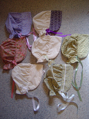 This year I wanted a party for Mei that was a little bit more special. We invited 7 girls to share in her 7th birthday. I thought it would also be a good way to get to know some local homeschoolers as well. Yes, practical and yet fun...win win. We decided on PIONEER theme. So dress up of course. Not all the girls had pioneer dresses or bonnets, so I took it upon myself to sew 7 new bonnets for 7 sweet girls. Besides, we had missed out on some birthday parties, so this was like our belated birthday gifts to them. Practical and thoughtful and fun...win win win.